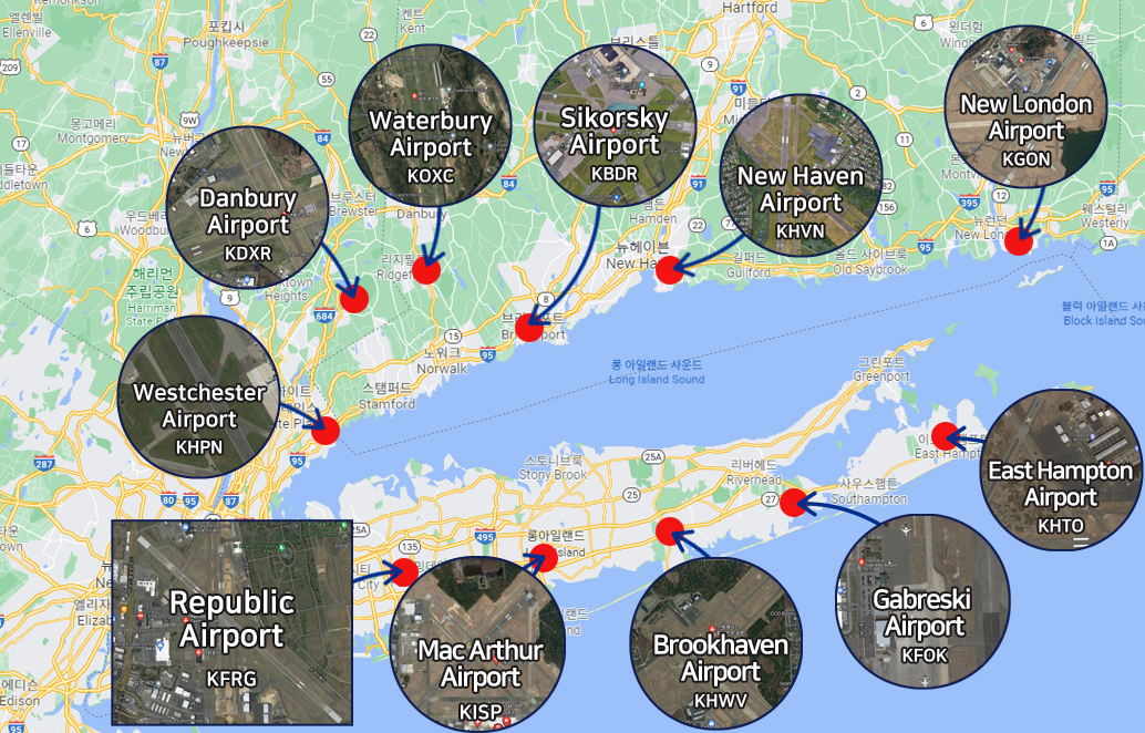 - JFK, LGA 국제공항 관제권으로 대형 공항 공역 진입 가능